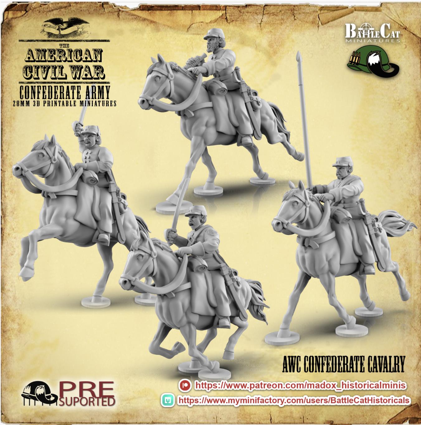 28mm American Civil Way Gaming- ACW Confederate Cavalry (set of 10 including command)