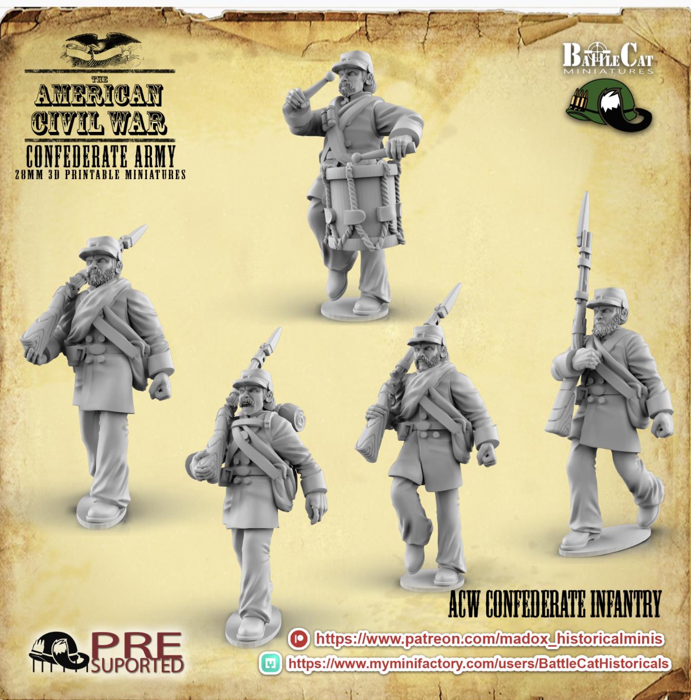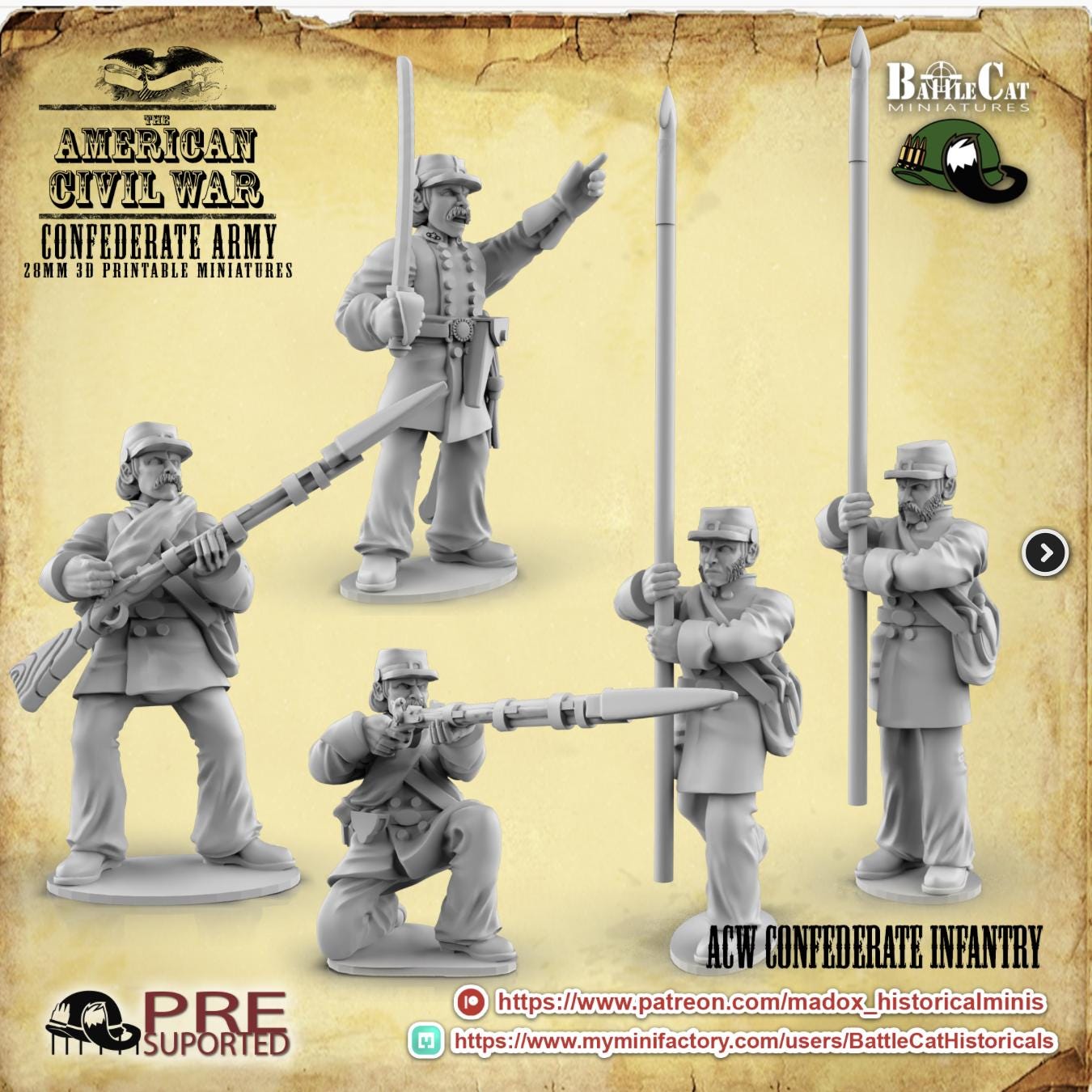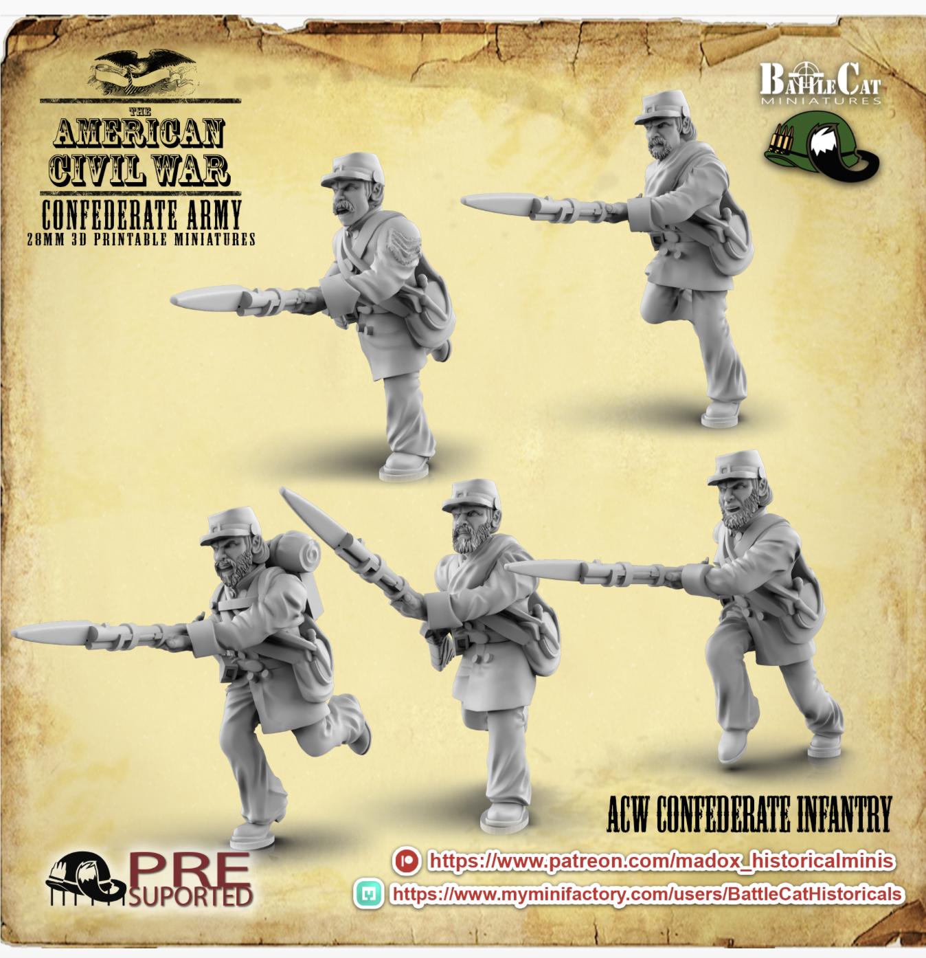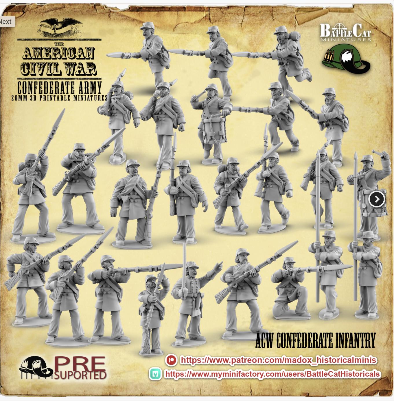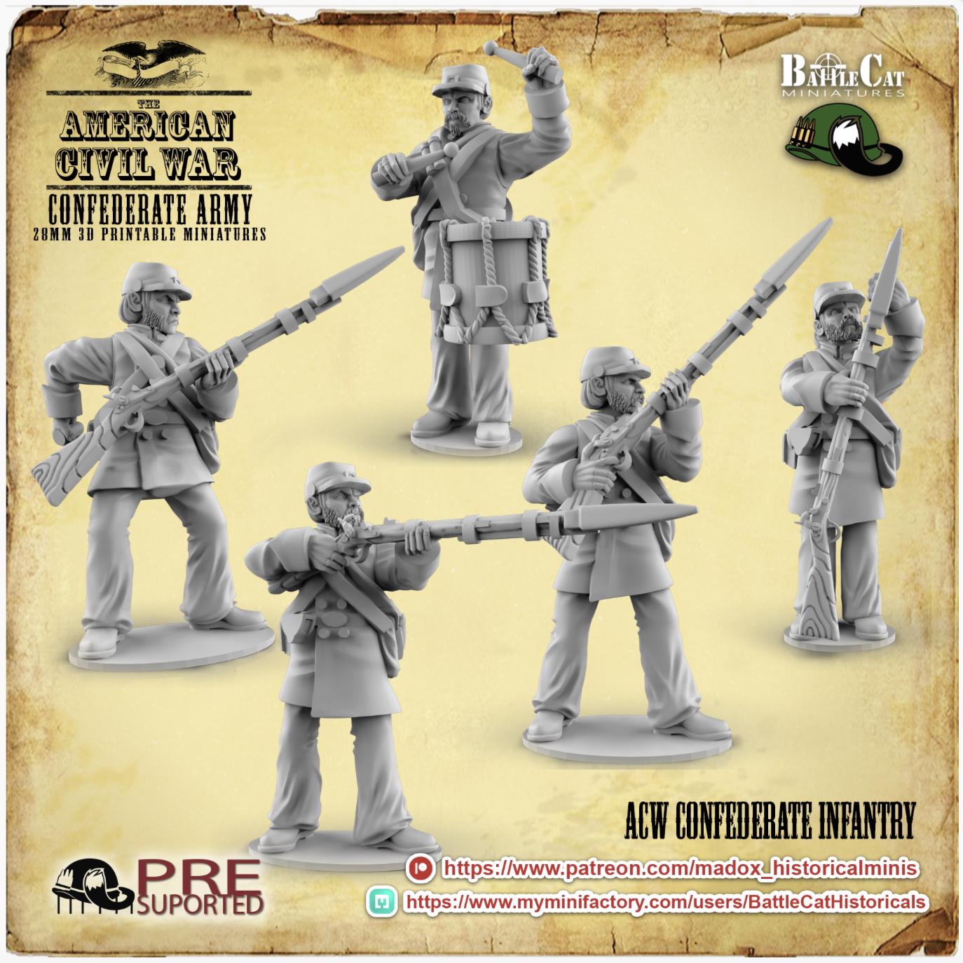 28mm American Civil Way Gaming- ACW Confederate Infantry (Squad of 20 Including Command)